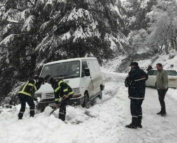 وأوضحت المديرية العامة للماية المدنية في بيان لها أنه في ولاية تيزي وزو وبالضبط ببلدية أبودرارن تم إخراج سيارة وحافلة عالقتين في الثلوج على الطريق الوطني رقم 30 فج تيزي كولال، وعلى متنهما 21 شخصا.