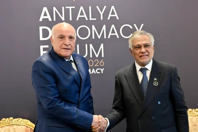 وكالن وزير الدولة، وزير الشؤون الخارجية والجالية الوطنية بالخارج والشؤون الإفريقية، أحمد عطاف، قد اجرى بمدينة أنطاليا، محادثات ثنائية مع نائب رئيس الوزراء ووزير الشؤون الخارجية الباكستاني، محمد إسحاق دار.