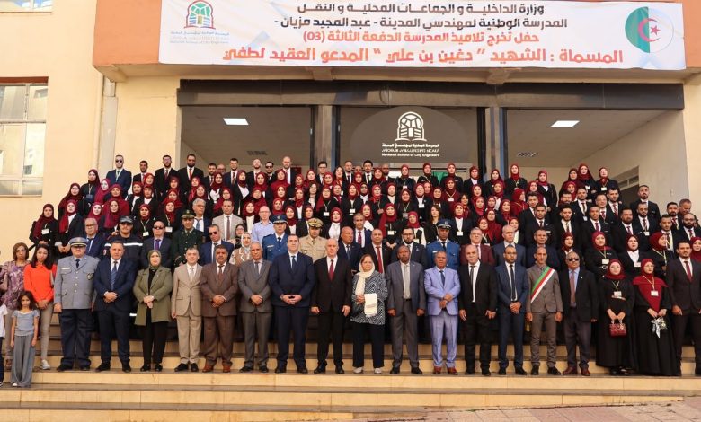 أقيم يوم السبت حفل تخرج الدفعة الثالثة لطلبة المدرسة الوطنية لمهندسي المدينة “عبد المجيد مزيان” لتلمسان, بإشراف المدير العام للموارد البشرية و التكوين و القوانين الأساسية لوزارة الداخلية والجماعات المحلية و النقل شرف الدين بوضياف وبحضور السلطات الولائية.