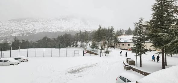 وفي المركز الوطني للرياضة و التسلية, علت صيحات الأطفال الذين كانوا يلعبون بكرات الثلج وزاد مرحهم وعفويتهم المكان جمالا لبياض الثلج التي غطى حتى المساحات التي اتت عليها حرائق الغابات في الصيف الماضي.