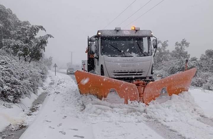 كما تدخل فرع أمشدالة لإزالة الثلوج على الطريق الوطني رقم 30 المؤدي إلى ولاية تيزي وزو عبر سحاريج.